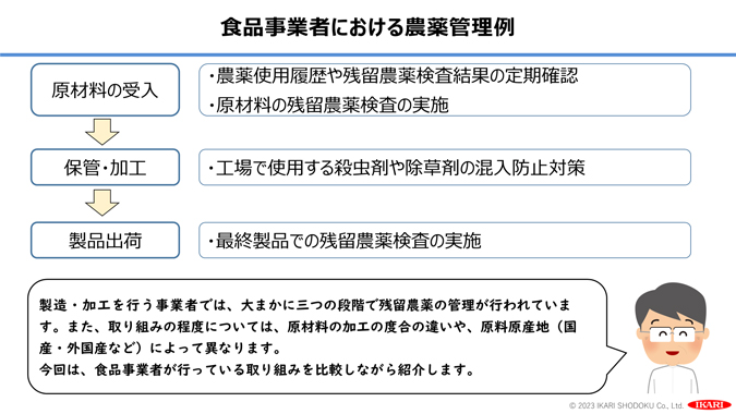 - 残留農薬管理を勉強する新任の食品事業者