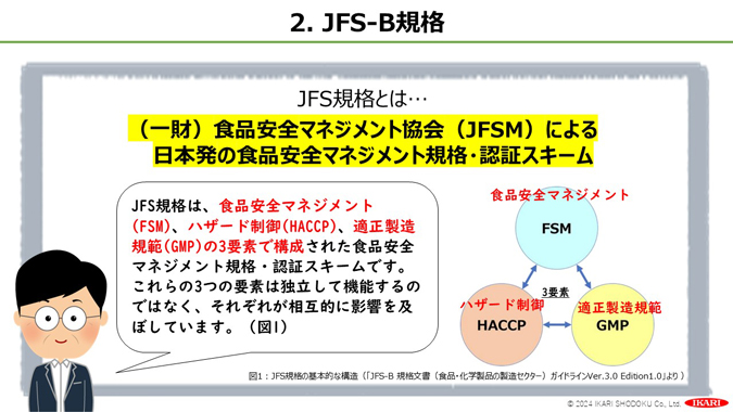 JFS-B規格の導入を検討している企業様、JFS-B規格の導入が終わり、部下・後輩・新規HACCPチームメンバーの教育を検討している企業様向けの講義です。- 構成